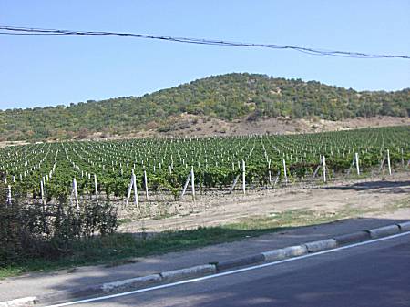 eine mediterrane Landschaft auftauchte. Man sieht es an den Zypressen und den Weinbergen, wo übrigens der Krimsekt